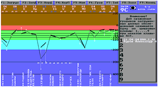 Первостепенной задачей наших исследований являлась разработка критериев нормы или энергопунктурограммы (ЭПГ) "Практически ЗДОРОВ". Несмотря на то, что все курсанты ВМедА – практически здоровы – график ЭПГ не вытанцовывался. И только тогда, когда мы стали формировать группы испытуемых по одинаковой индивидуальной направленности коэффициентов корреляции при клинических, биохимических, лабораторных и др. показателей мы смогли в 1981 году подобрать группу, обследование которой нам и позволило получить статистическую ЭПГ "Практически ЗДОРОВ", для широты г. Ленинграда (60Ос.ш.), или для региона средней полосы северной широты. Выйдя на нановольтамперный диапазон энергоинформационных исследований состояния БАТ, мы очень долго сомневались в достоверности результатов, получаемых по нашей методике. И только после многолетней апробации ее в полевых условиях Афганистана Закурдаевым В.В., мы окончательно убедились в объективности и достоверности получаемых результатов.
