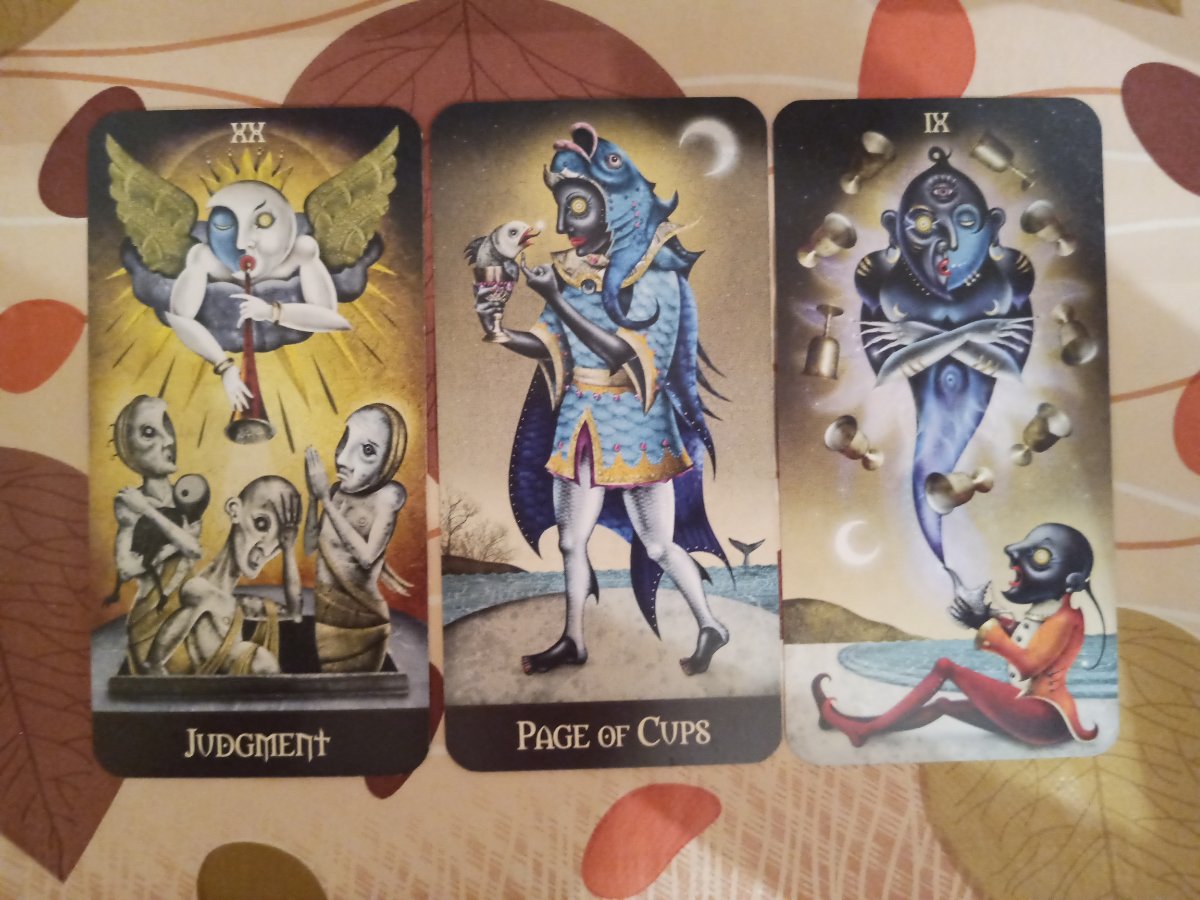 Пришла ты на форум, не убегая от проблем, а пришла в хорошем расположении духа, проявив прагматичный подход (дама пентаклеи), потому, что знаешь себя. Потому что знаешь "если сейчас хорошо, то значит скоро будет плохо", что и подтверждает восьмёрка мечей в голове "ничего не могу придумать", и восьмёрка чаш в сердце "надо срочно куда-то сваливать". Ты такая "я бравый вояка, сейчас ченить замутим" (паж мечей), тебе ангелы сверху вторят "все так и должно быть" (правосудие). Путь совсем не простой и прямой и у тебя есть все шансы продолжить путь дураки (перевернутый рыцарь чаш), но в любом случае. это тебе поможет уйти от гипотетических проблем (шестерка мечей), и определенно есть шанс найти свою "недостающую половинку", то чего тебе не хватает...