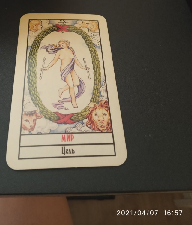 @Stella если вам карта мир выпала в любом из раскладов на вас значит вас ожидает мир благо и духовная эволюция, после смерти вознесетесь на другой эволюционный уровень эта карта говорит что в этом отрезке жизни вселенная и само время помогает вам чем дольше живете тем лучше и больше.