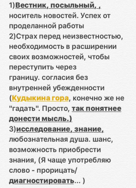 С другой стороны, пояснив, что такой вариант возможен, можно дать человеку шанс чего-то избежать или наоборот, испытать. Гадальщик, тогда может выступать в роли проводника высших сил и коррекции. Если же гадальщик дремуч и зол, то может человека настроить на негативный вариант развития события.